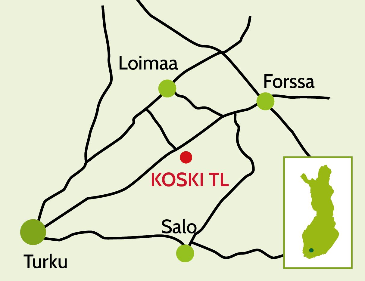Haaveiletko omakotiasumisesta kätevän matkan päässä työpaikastasi? Koskella se on mahdollista. Meiltä pääset puolessa tunnissa Loimaalle, Saloon tai Forssaan ja alle tunnissa Turkuun. Tampereelle ja Helsinkiin ajat puolisentoista tuntia.